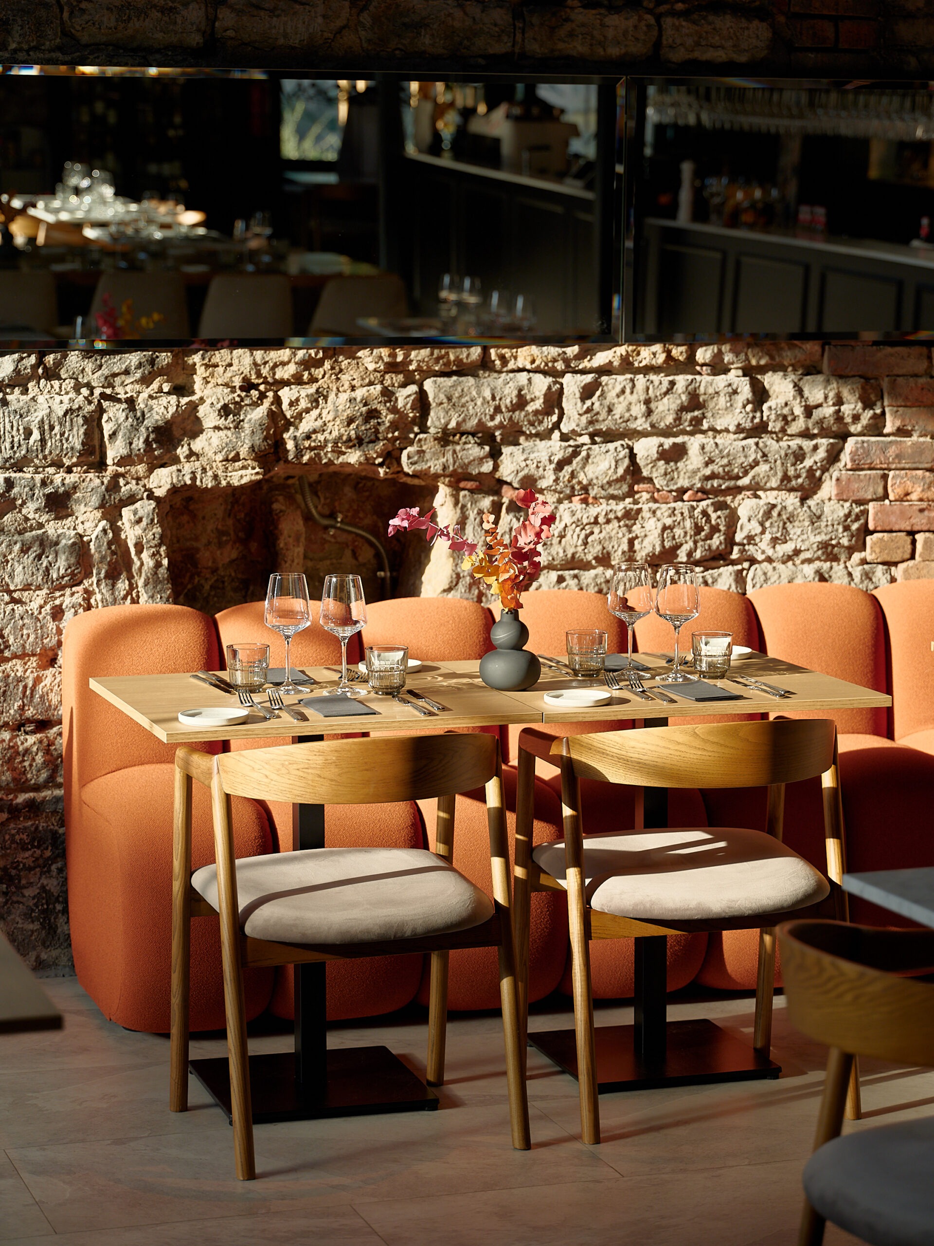 Standard sisustas restorani Moon laudade ja istekohamööbliga, ühendades kaasaegse mugavuse ja koha industriaalse võlu harmooniliselt ühte tervikusse.