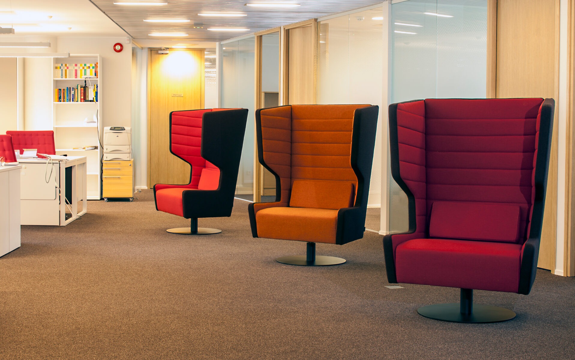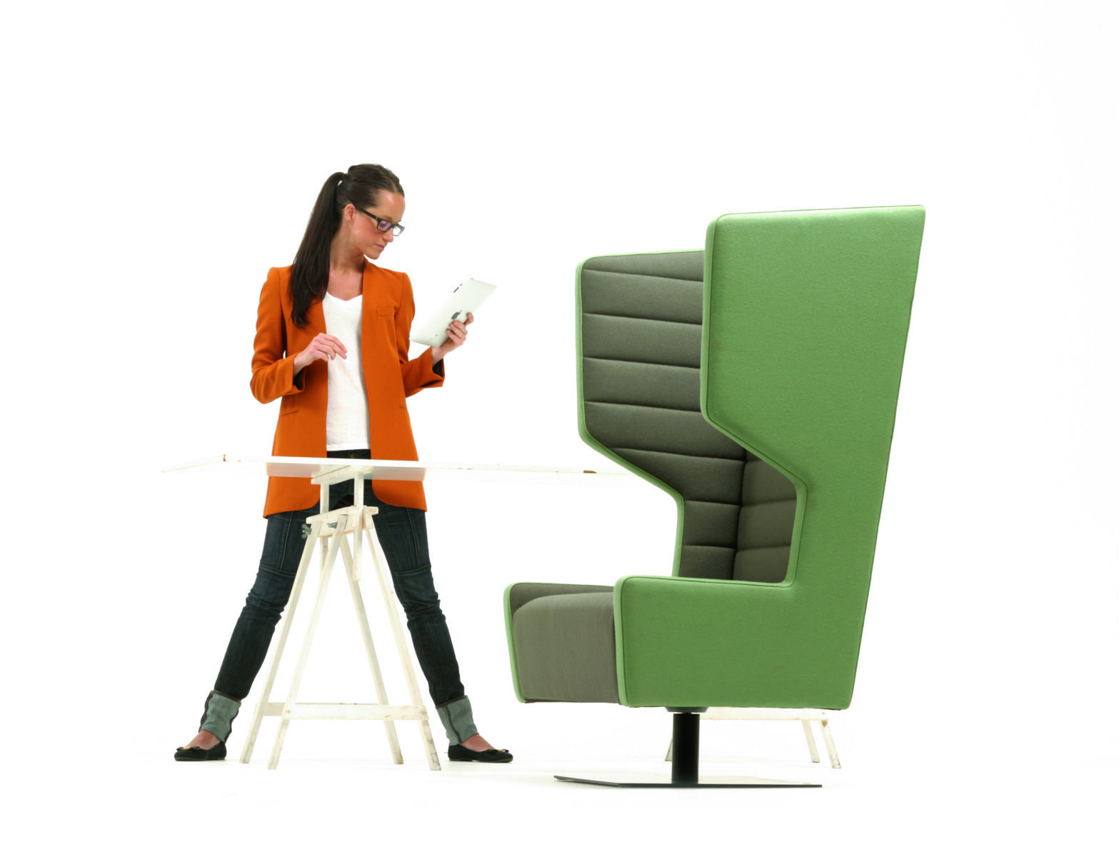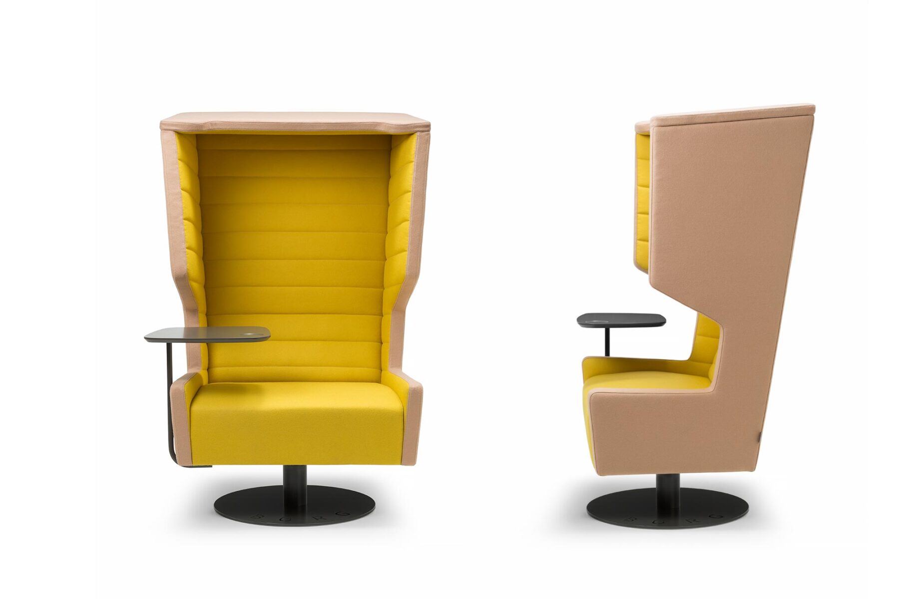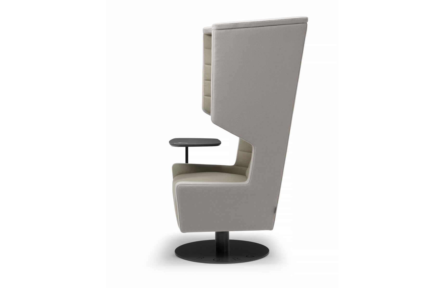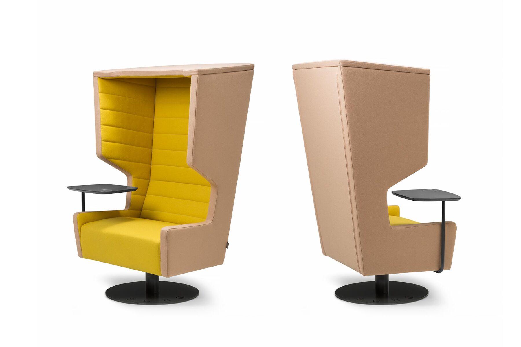 A work of art that separates the occupant from the surroundings, which is also a comfortable and noise-reducing chair. CUSTO has elegant sharp lines and an airy design. Sitting in it offers pleasant privacy – ideal for furnishing an office or spacious home. To add practicality, a side-mounted support table can be ordered for the product.