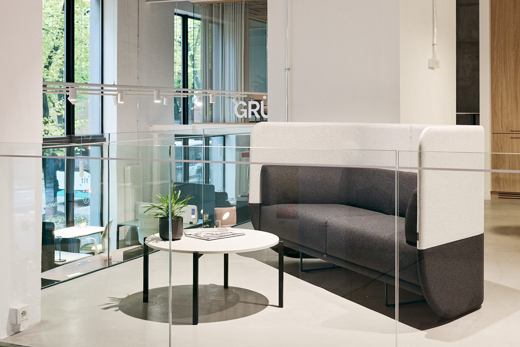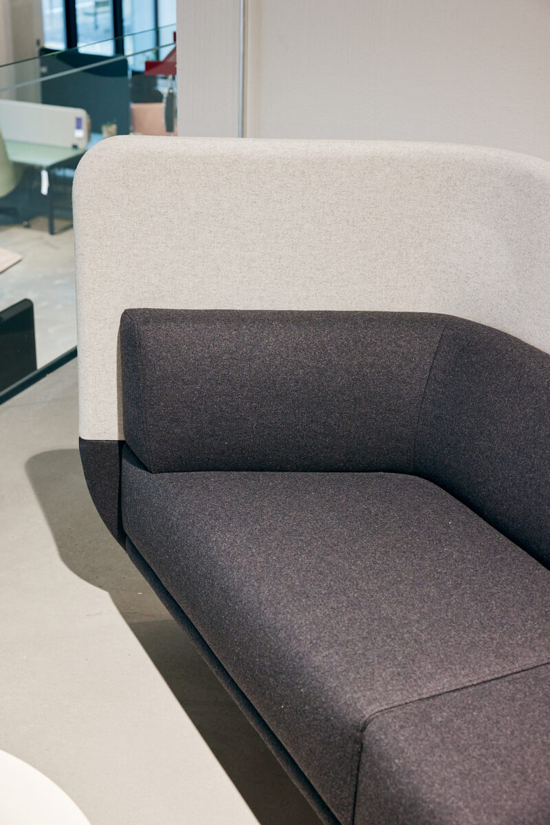 Its nest-like form helps to reduce ambient noise, creating a comfortable setting for focused work, private conversations, or casual coffee breaks. The CONNECT sofa is available with both low and high screens, offering varying levels of privacy and acoustic comfort.
