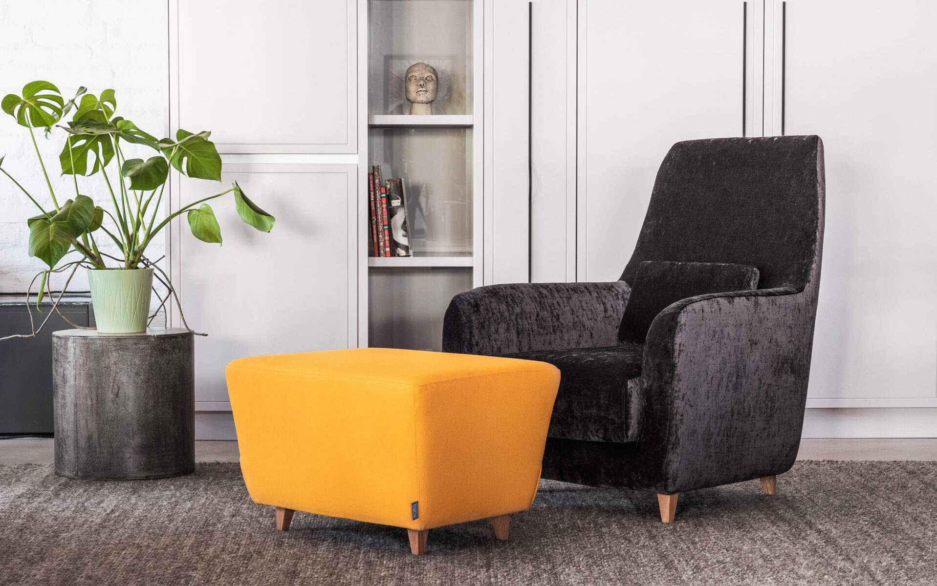 This high-back armchair seems royal yet cozy. Thanks to straight, but inclined and supportive backrest ELLA is a very good armchair for reading. It’s timeless form matches well with other Borg products and different forms in your home or office. ELLA is available as sofa, armchair and ottoman.