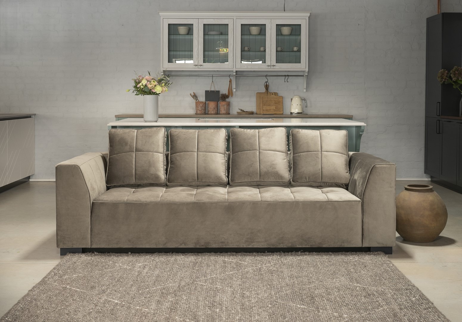 HANNA is a bold, minimalist and luxurious sofa designed for refined, modern spaces. Its substantial form, low oak legs and matching-height back and armrests create a sculptural symmetry that allows it to confidently take center stage in any spacious interior.