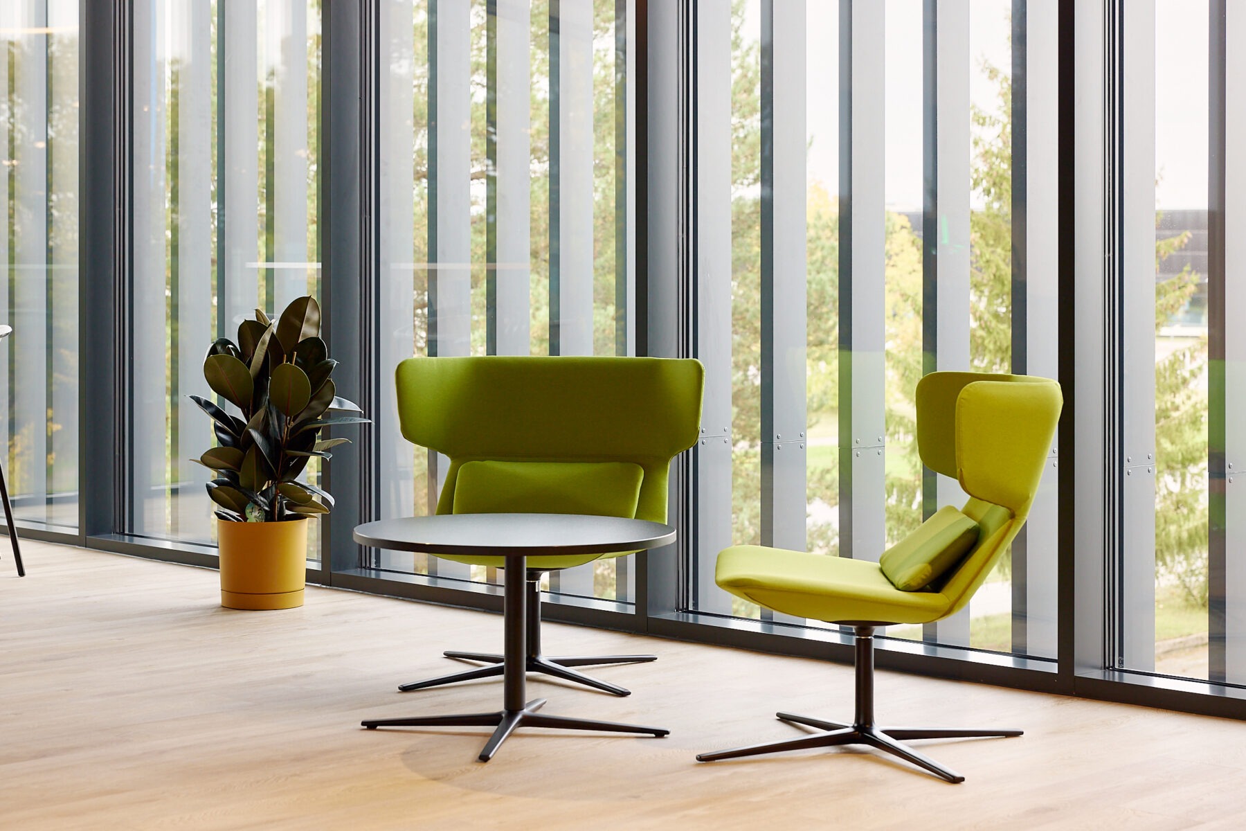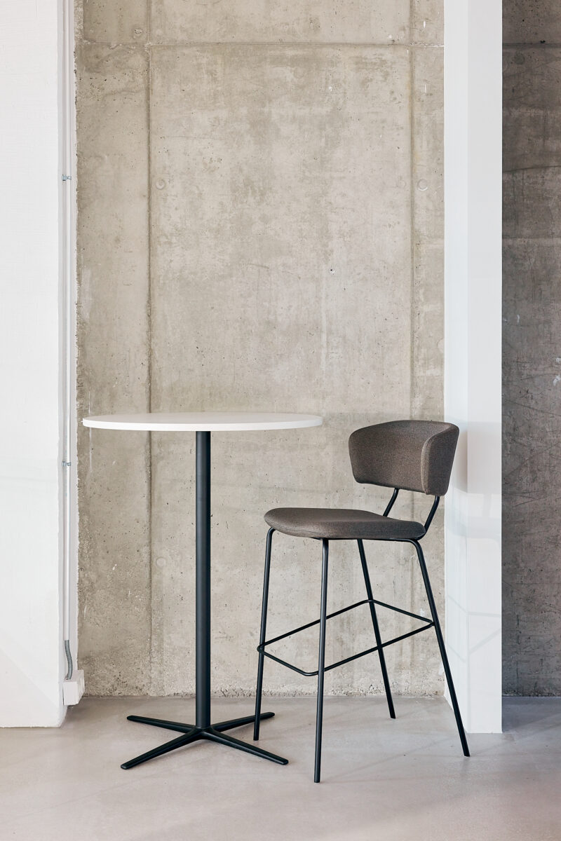 LOOP is a four-legged metal leg frame with a round tabletop. The frame comes in three height options, offering flexibility for different use cases. LOOP table combines functionality with clean design, making it a practical choice for both casual and professional settings. Suitable for small tables in lounge areas, cafés, and office environments.