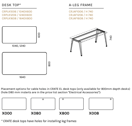 Veelgi suurema paindlikkuse tagamiseks saab lauaplaadile lisada kaabliava vasakule, paremale või keskele, võimaldades elektri- ja andmeühenduste mugavat integreerimist otse tööpinnale.