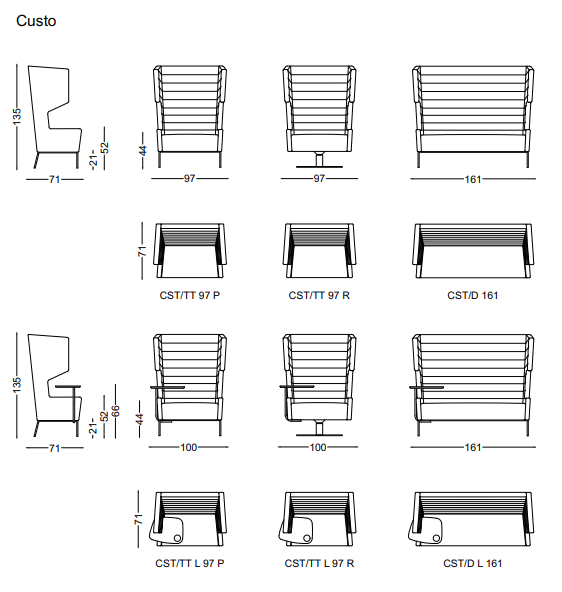 Istujat ümbrusest eraldav kunstiteos, mis on samas ka mugav ja müra vähendav tool. CUSTO’l on elegantsed teravad jooned ja õhuline disain. Selles istumine pakub mõnusat privaatsust – ideaalne kontori või ruumika kodu sisustamiseks. Praktilisuse lisamiseks saab tootele tellida küljele kinnituva abilaua.