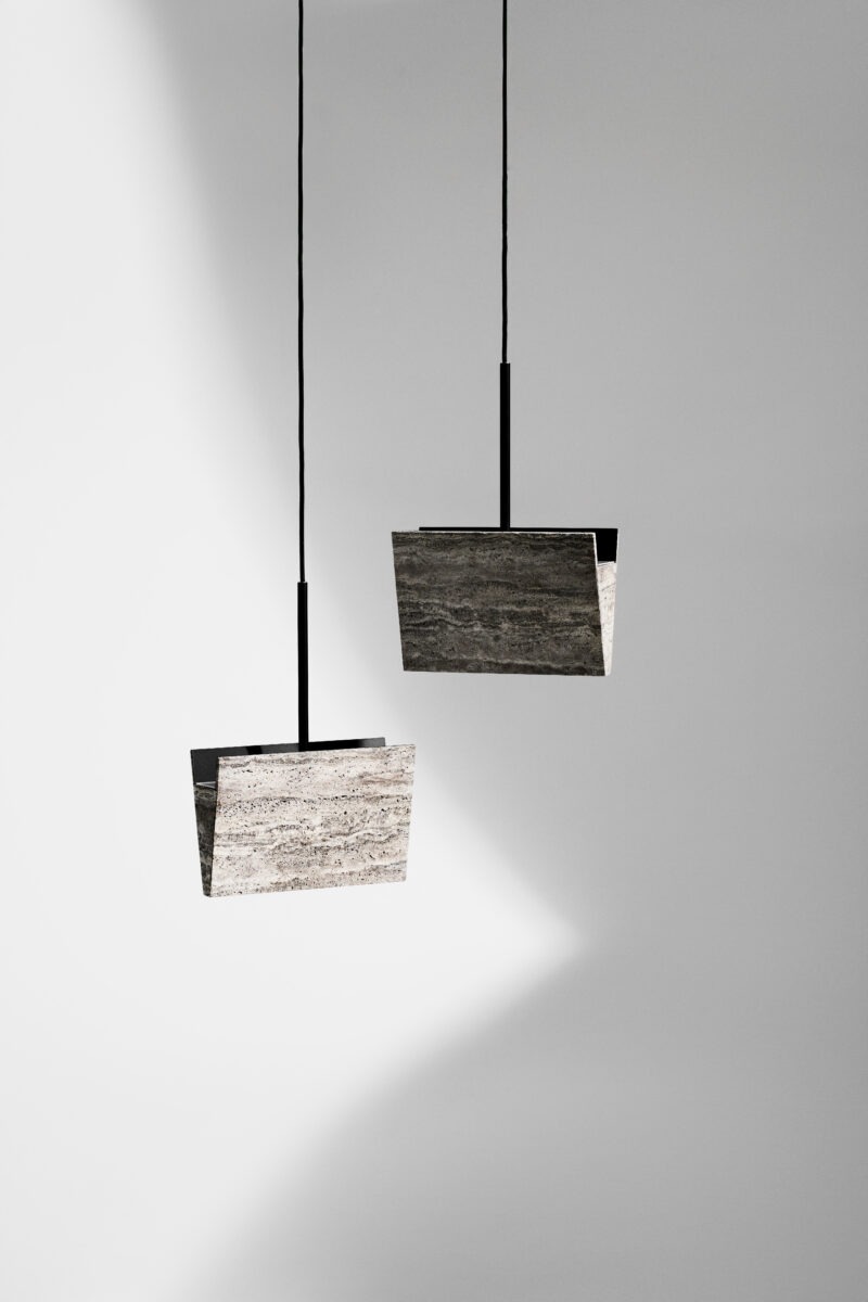 Lambivari on valmistatud pulbervärvitud alumiiniumist ja travertiinist.