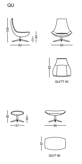 QU on poolkuu kujuline lõõgastumistool, mis on loodud selleks, et sa võtaksid aja maha. Selle piklik, kergelt väljavenitatud vorm ja kaarjas disain kutsuvad endasse sulanduma – olgu see kodus või kontoris.