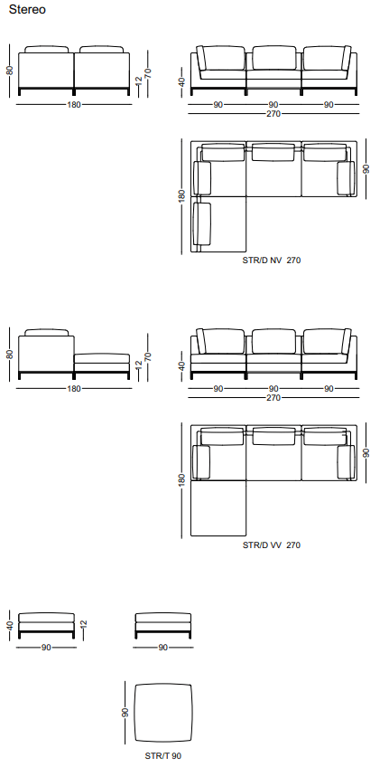 Tänu mooduldisainile saab STEREO’t kohandada täpselt oma vajadustele vastavalt – lisa juurde tugitool või tumba, mängi mõõtmetega või vali isikupärane kangas, mis sobib sinu sisekujundusega.